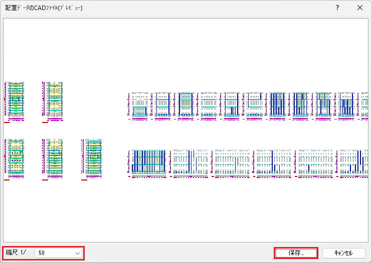 [配置データのCADファイル(プレビュー)]ダイアログの[保存]ボタンをクリックします。