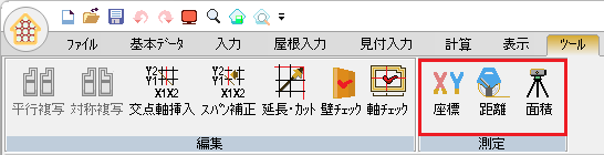 測定ツールで座標、距離、面積を確認することができます(詳細は、HOUSE-ST1ヘルプ「測定」を参照して下さい)。