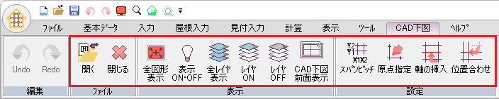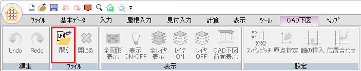 CADで作成した図面を下図として利用して、データ入力できます(詳細は、HOUSE-ST1ヘルプ「CADファイルの利用」を参照して下さい)。