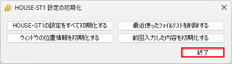 [HOUSE-ST1設定の初期化]ダイアログの[終了]ボタンをクリックします。