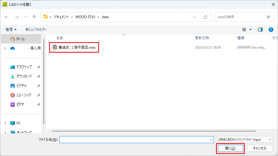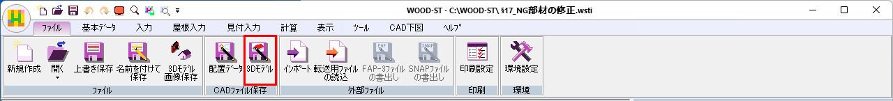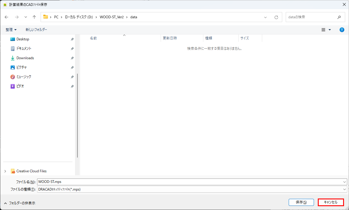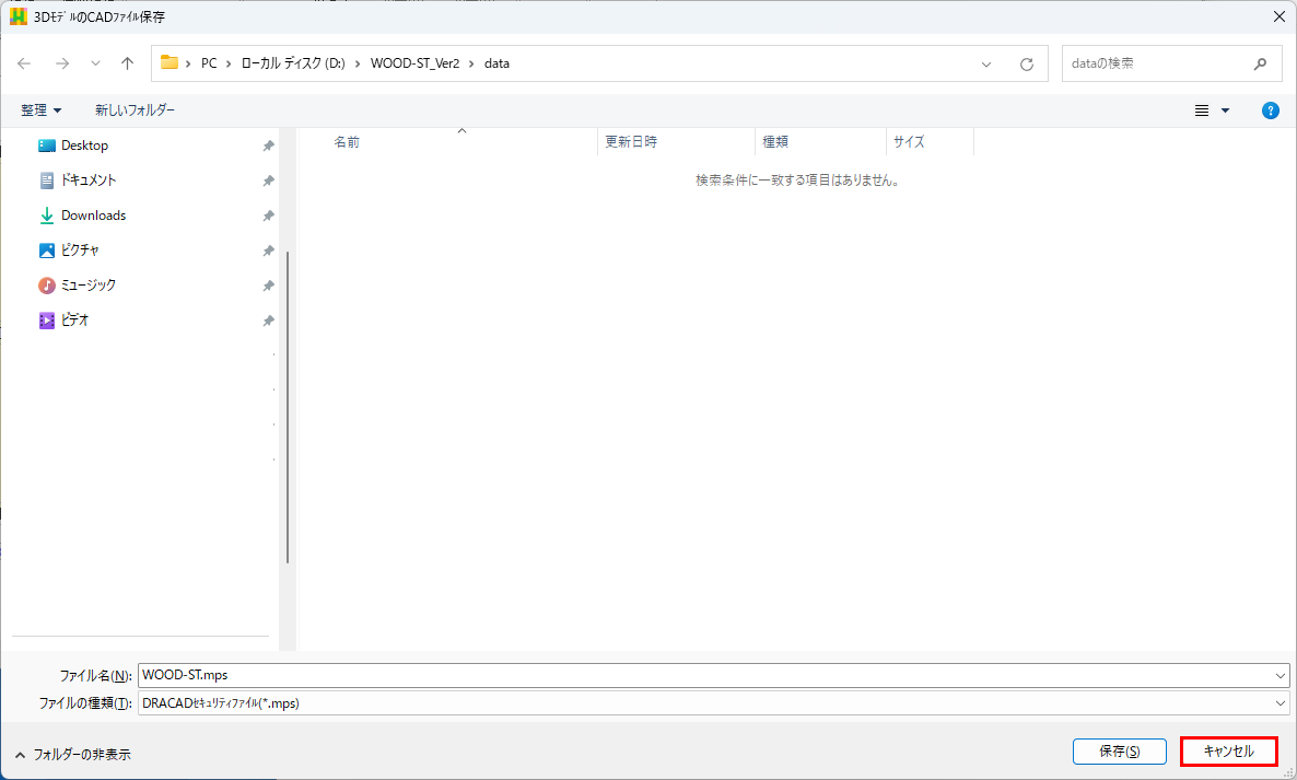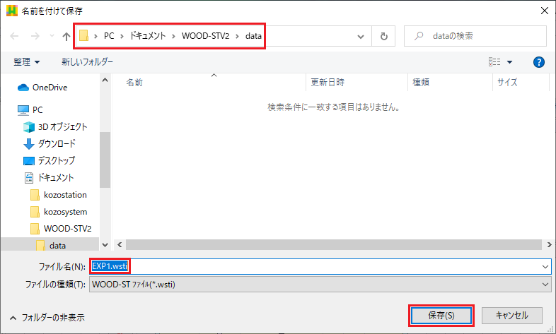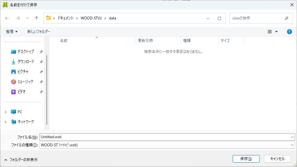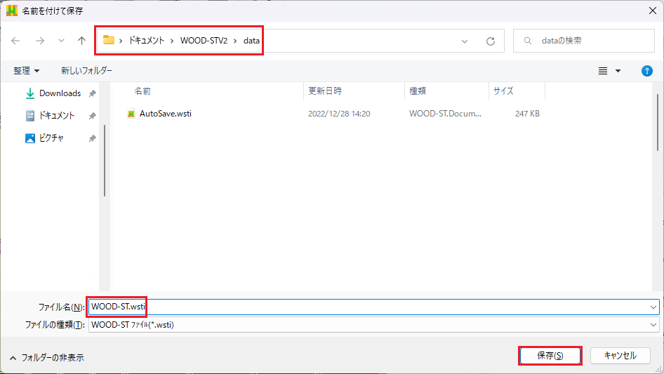 ※データを保存するドライブまたはフォルダは自動的にWOOD-STデータと同じドライブまたはフォルダになります。