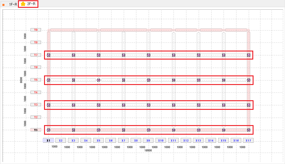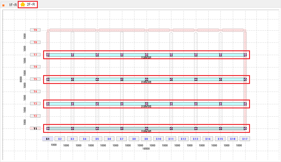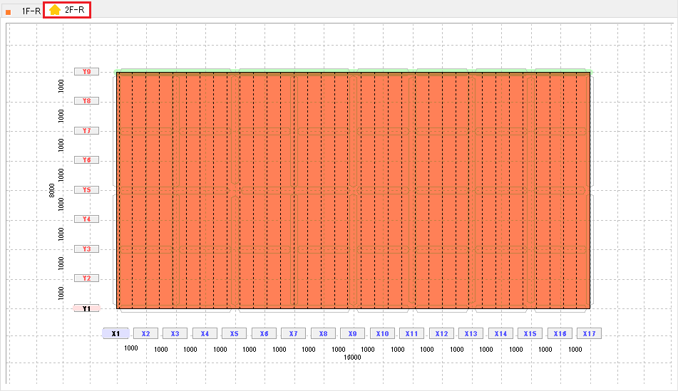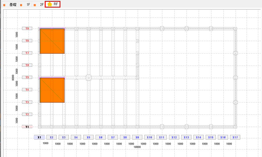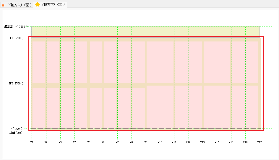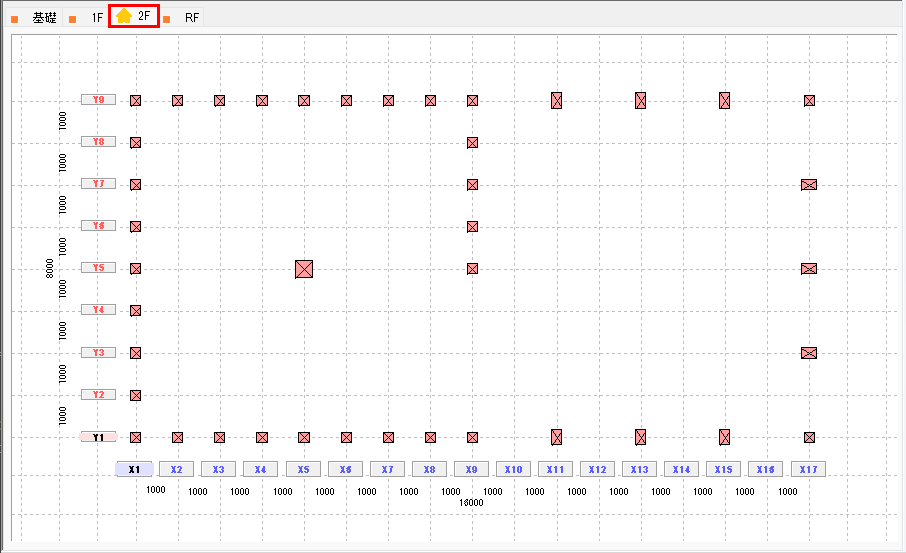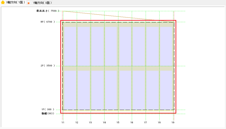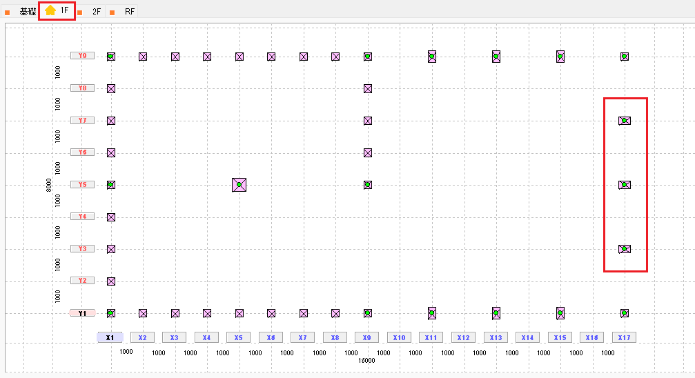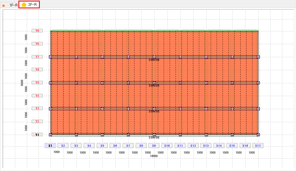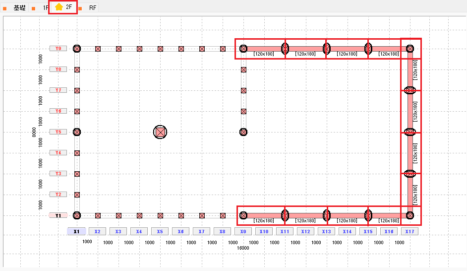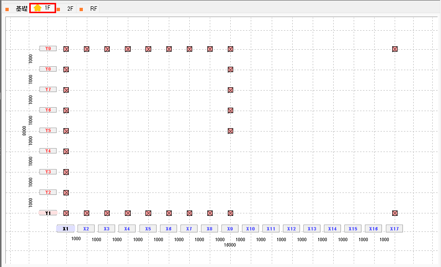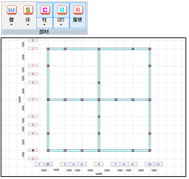 読込んだ建物入力データが伏図の作業ウィンドウに表示されます。