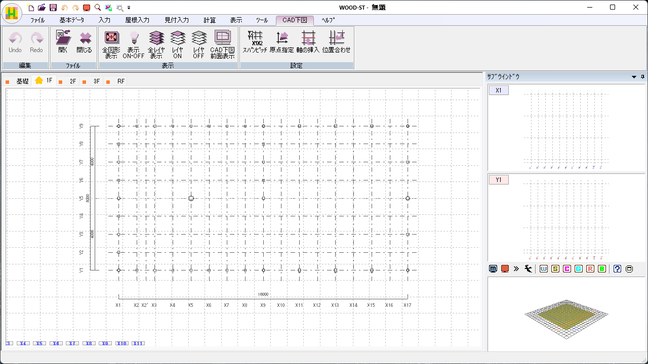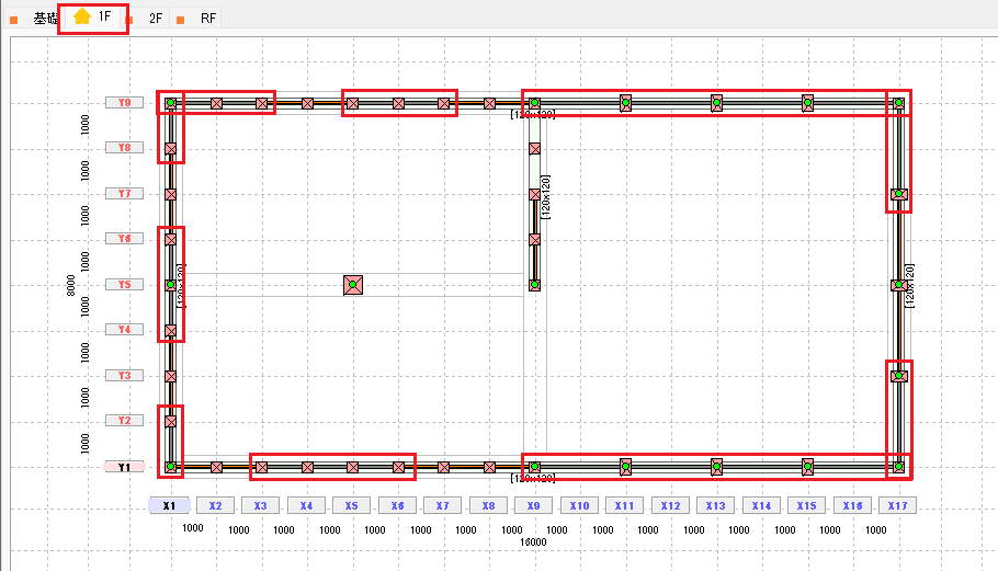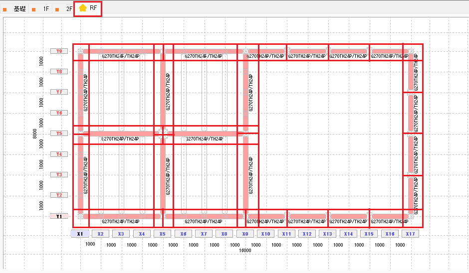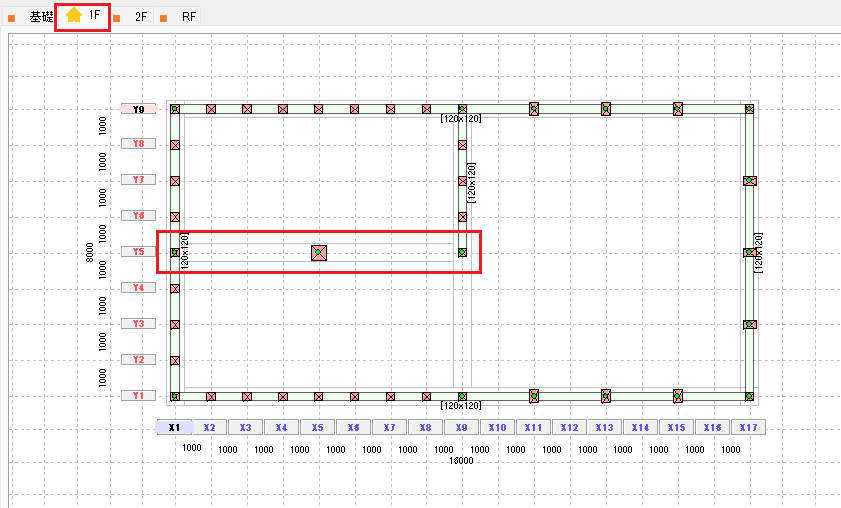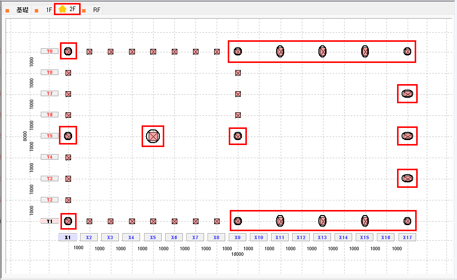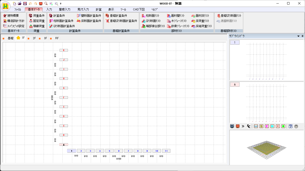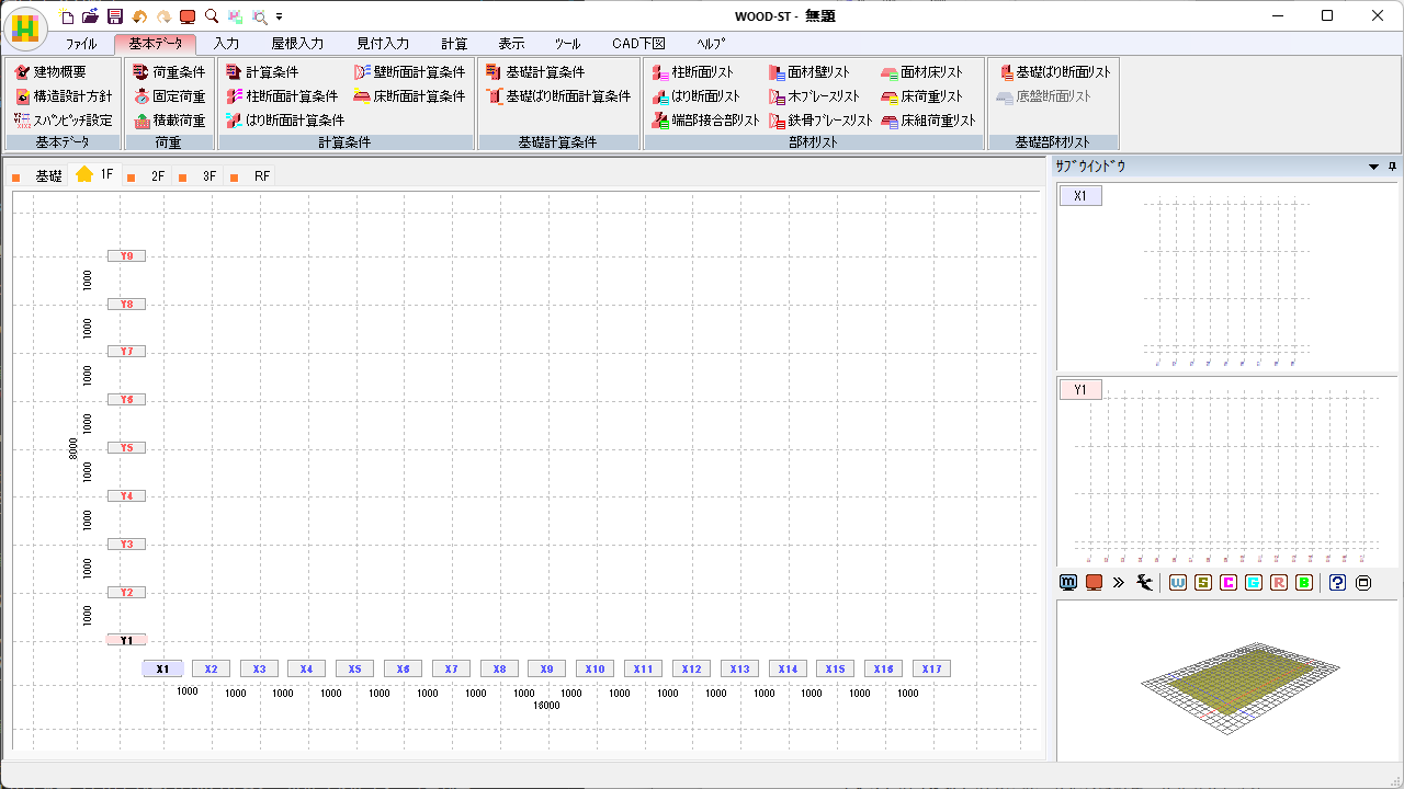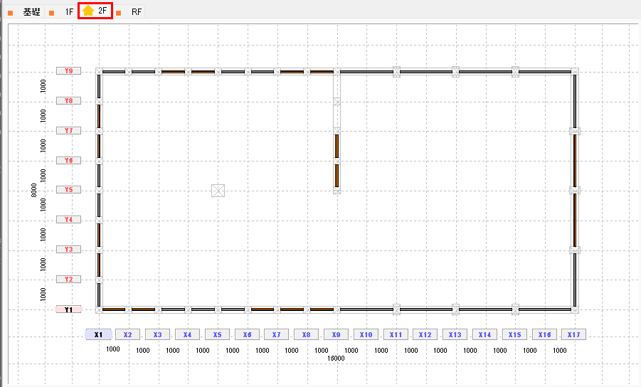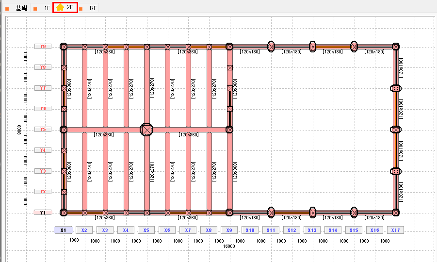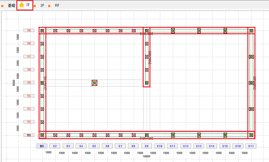 読込んだ建物入力データが伏図の作業ウィンドウに表示されます。