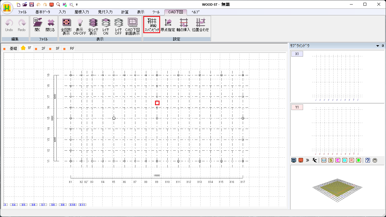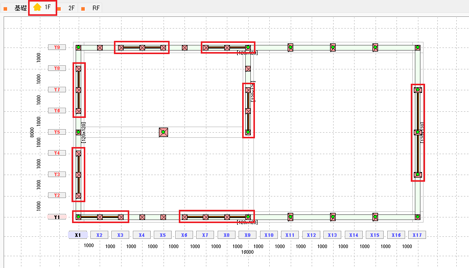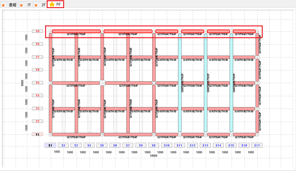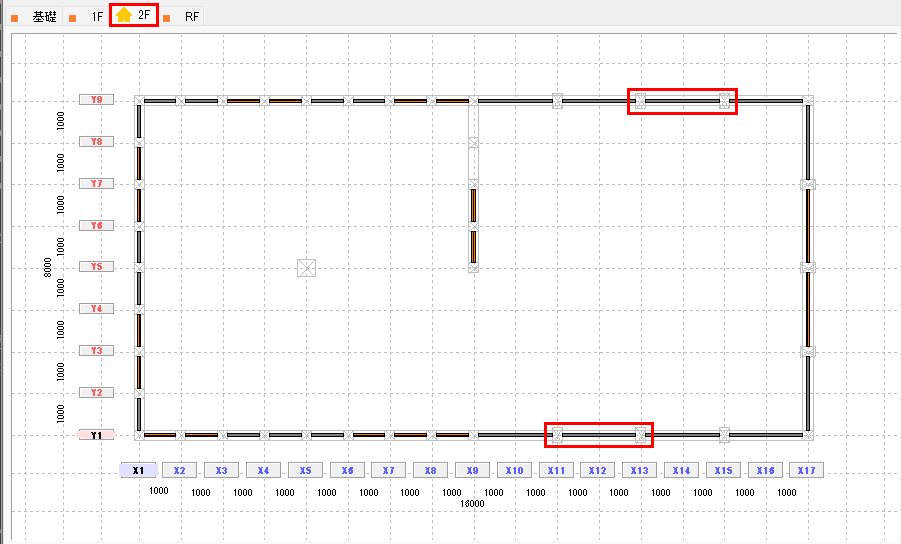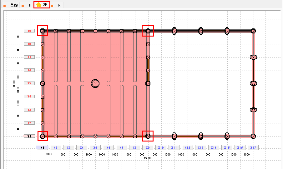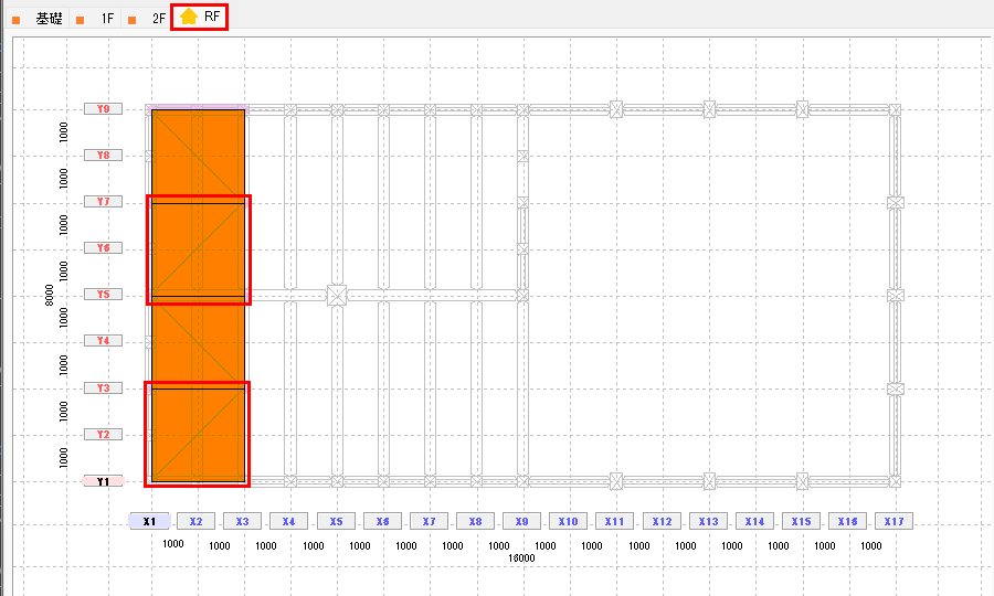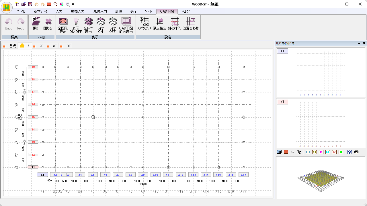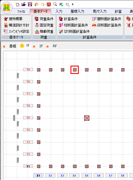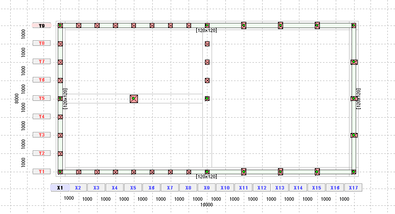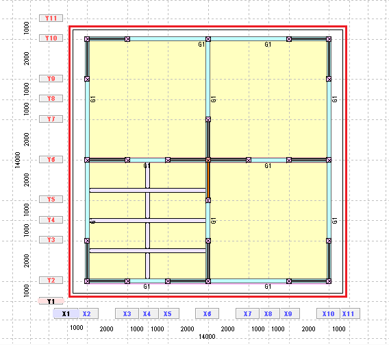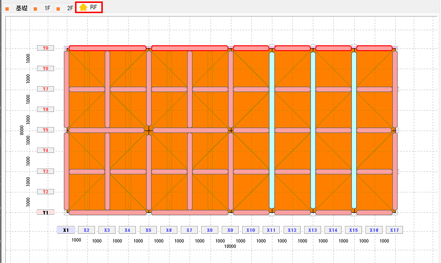 読込んだ建物入力データが伏図の作業ウィンドウに表示されます。