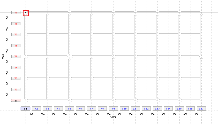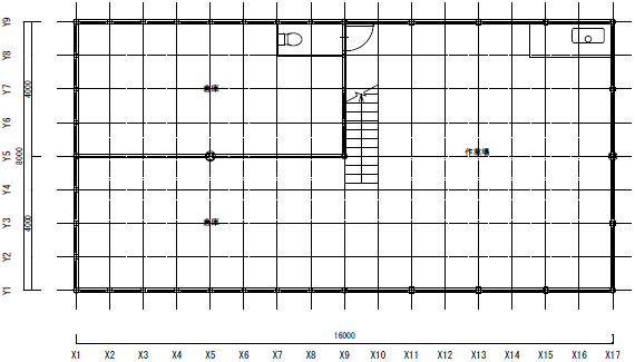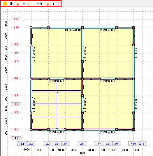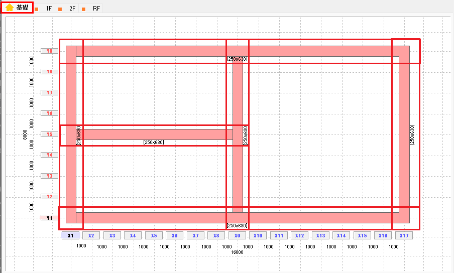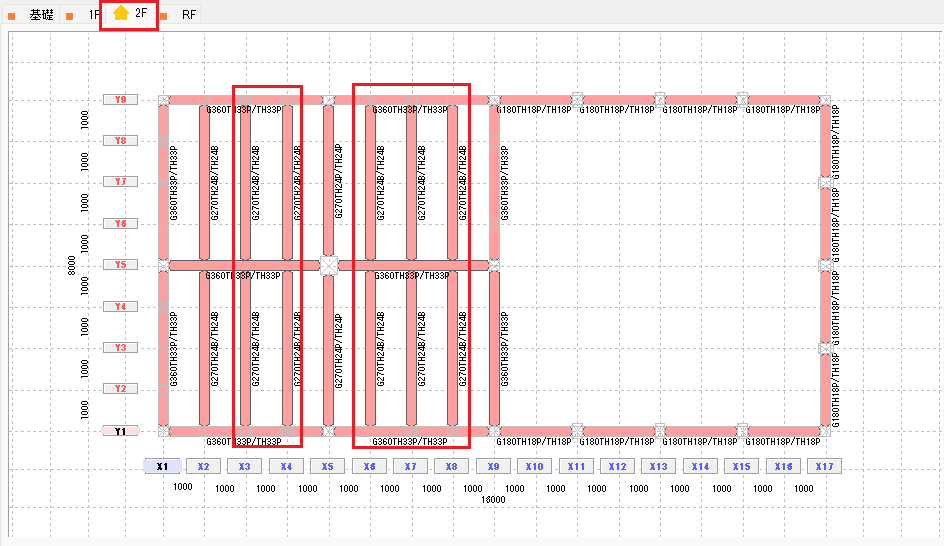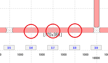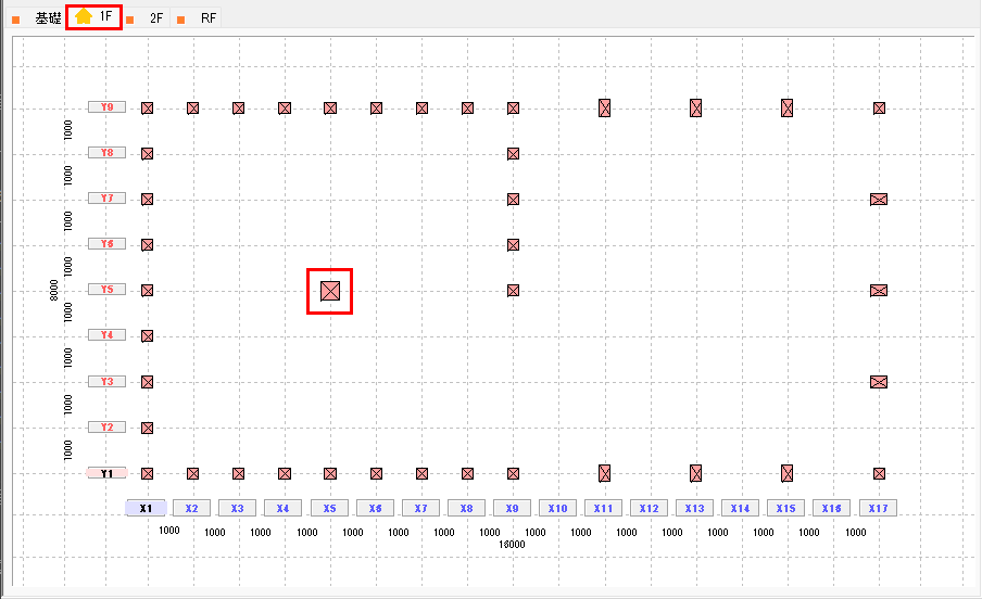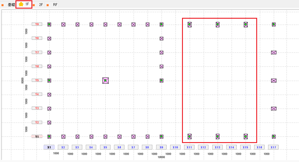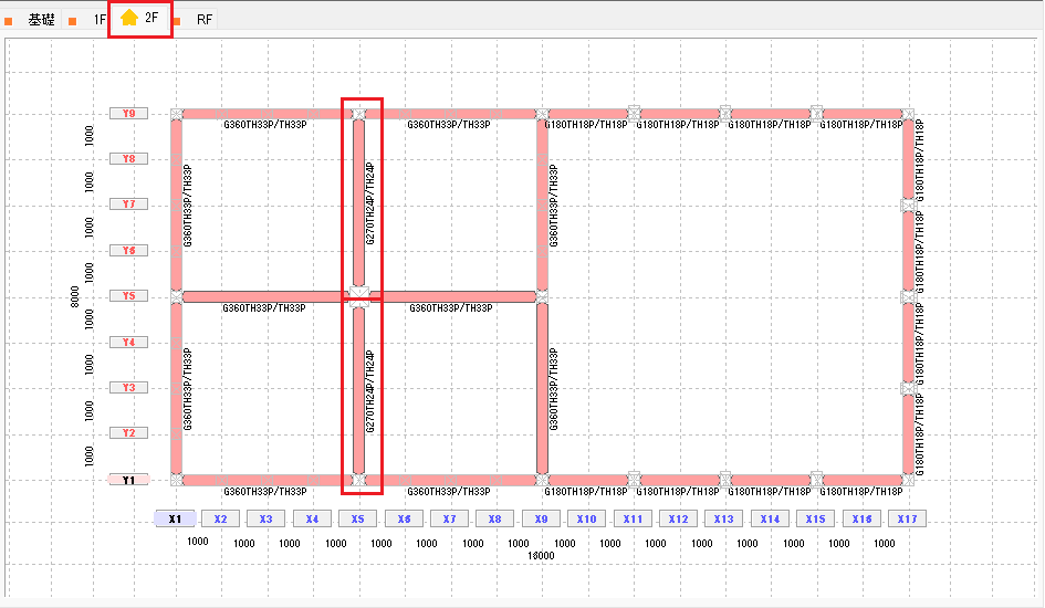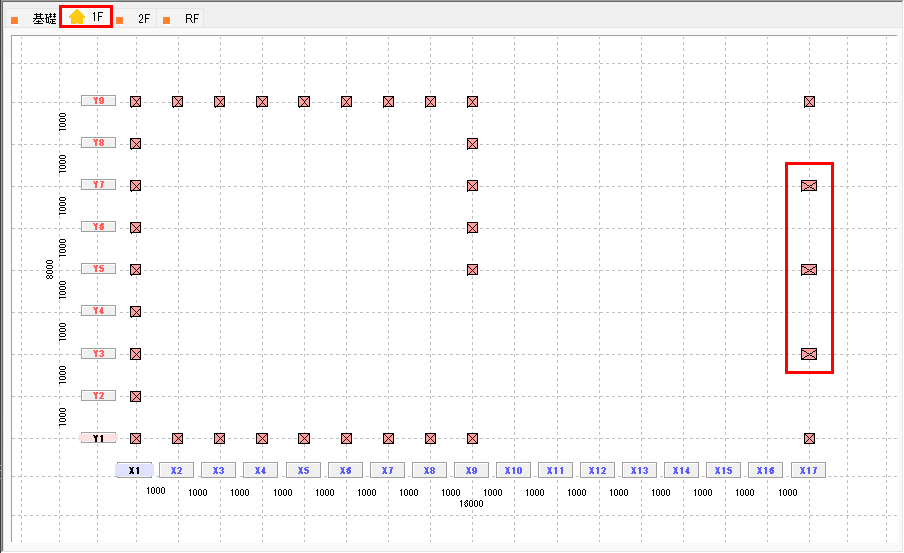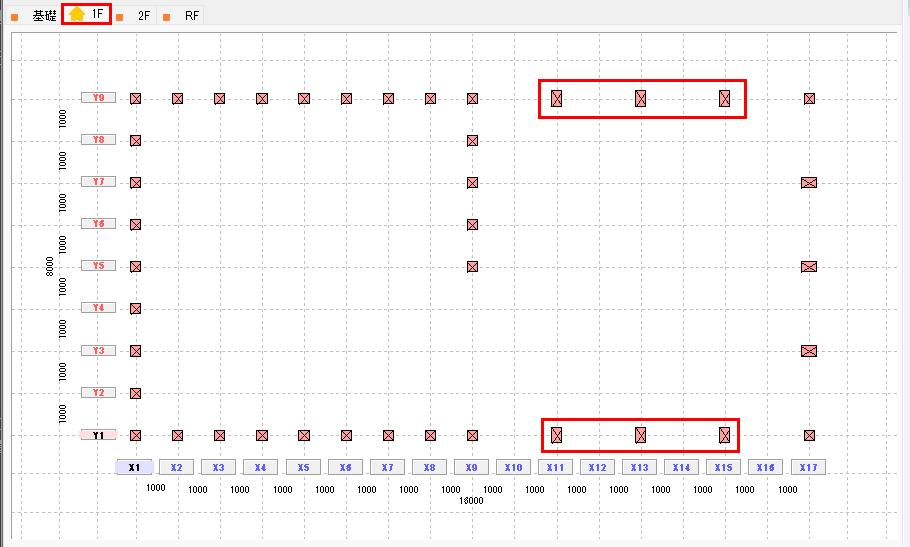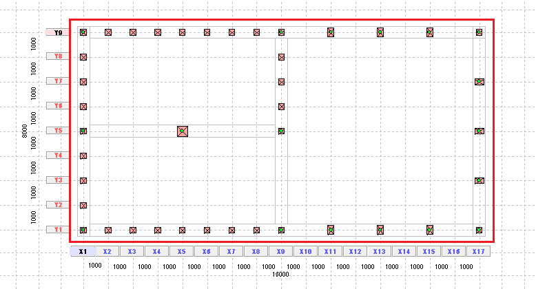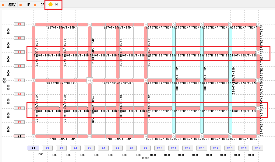 読込んだ建物入力データが伏図の作業ウィンドウに表示されます。