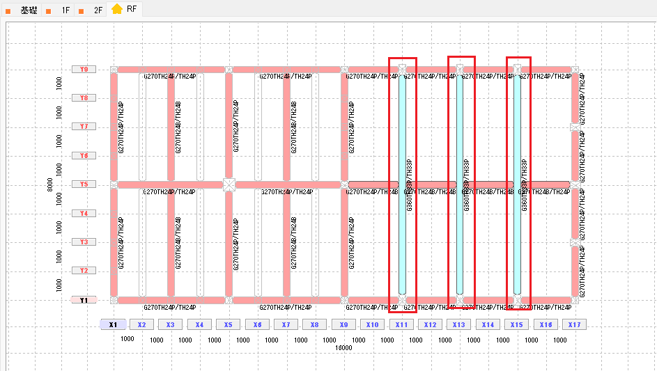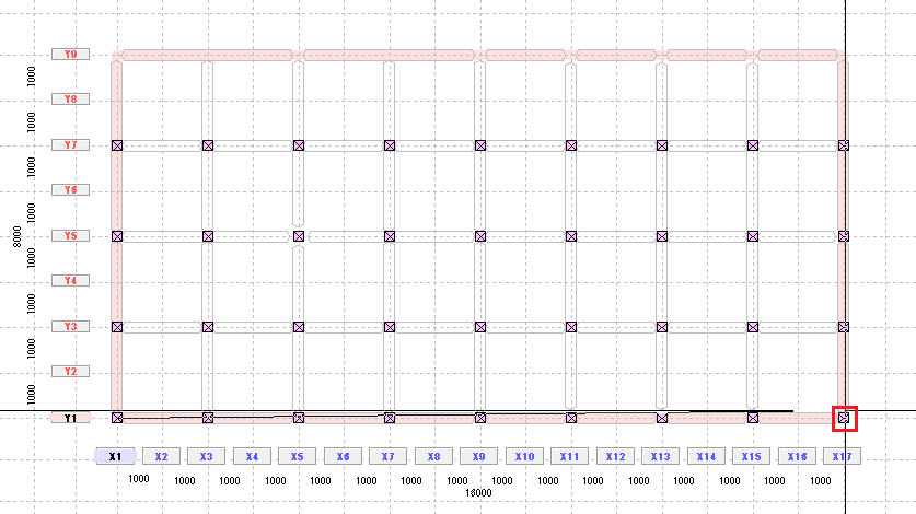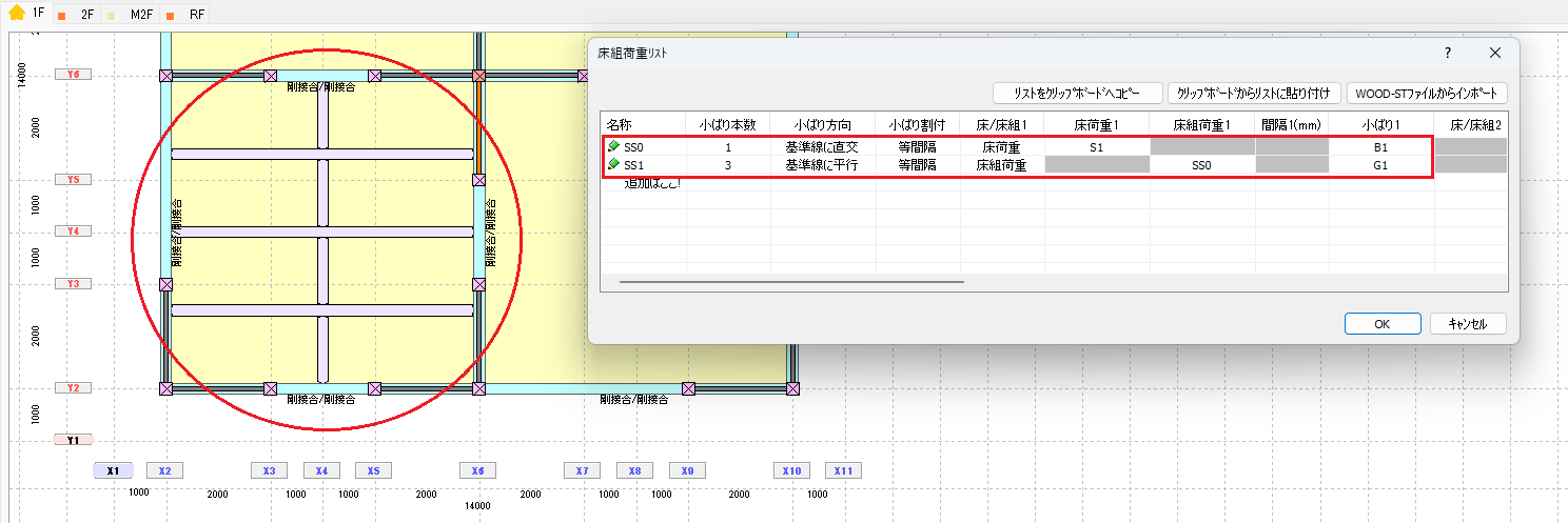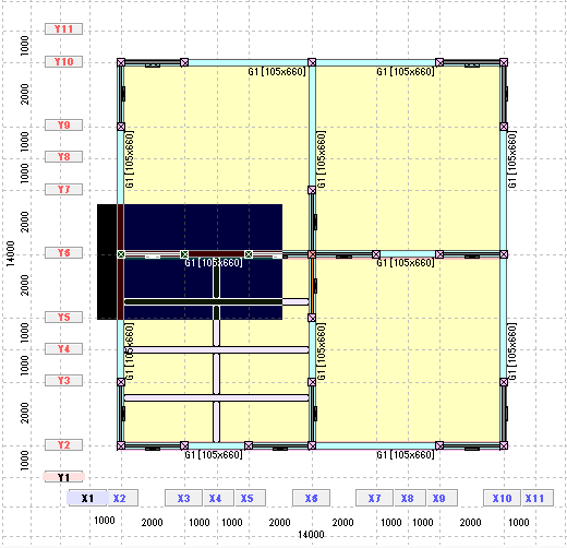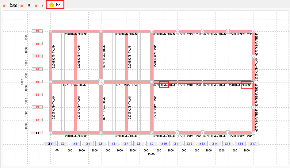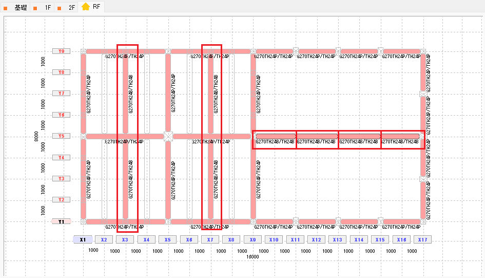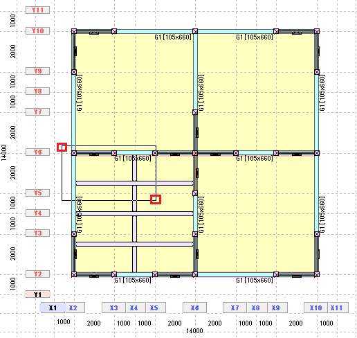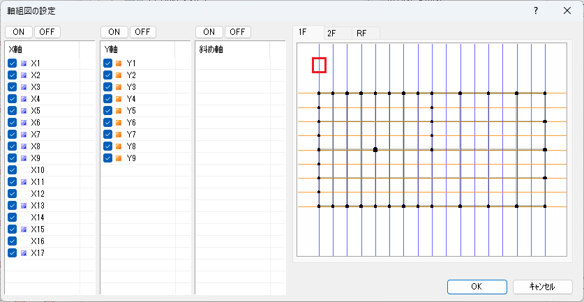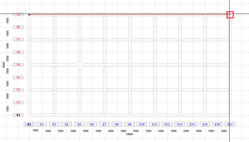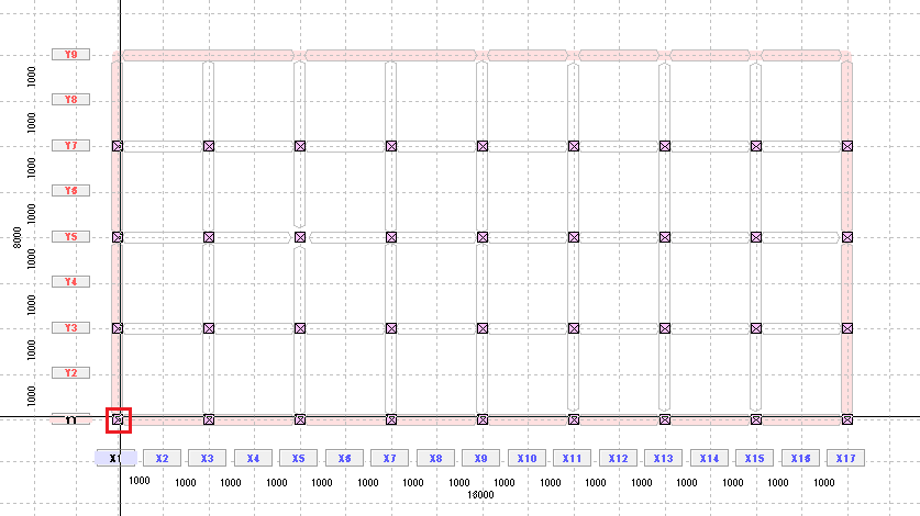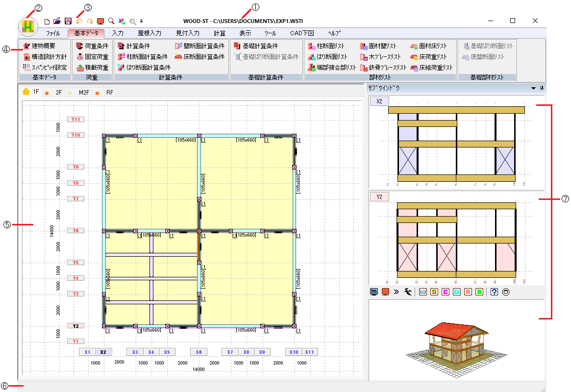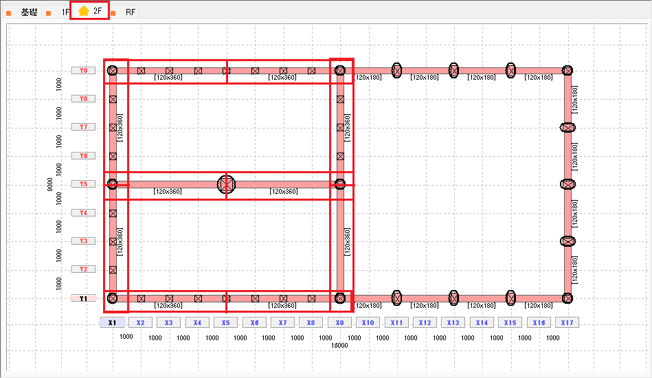 読込んだ建物入力データが伏図の作業ウィンドウに表示されます。