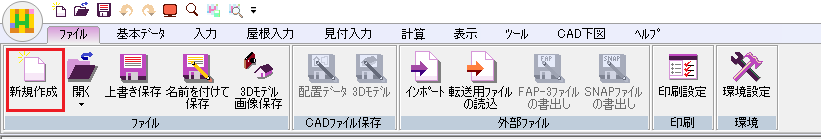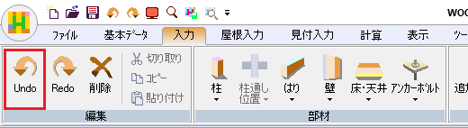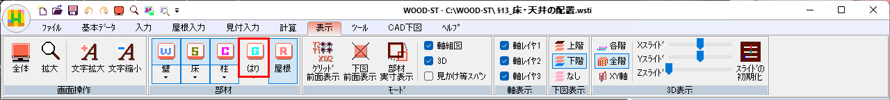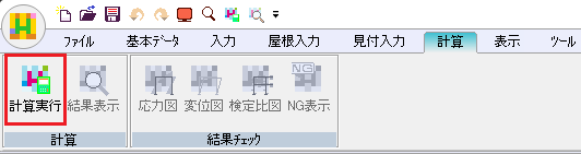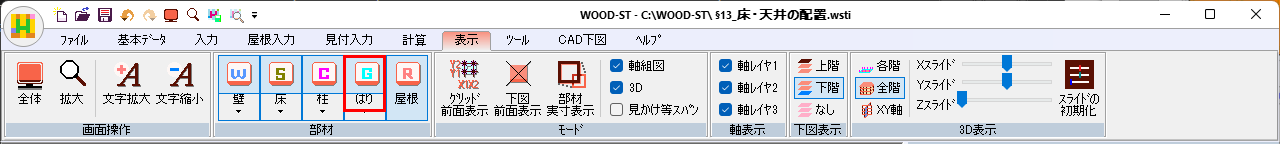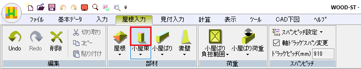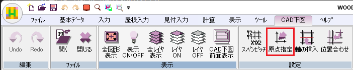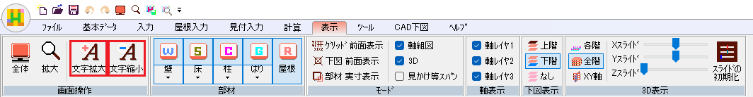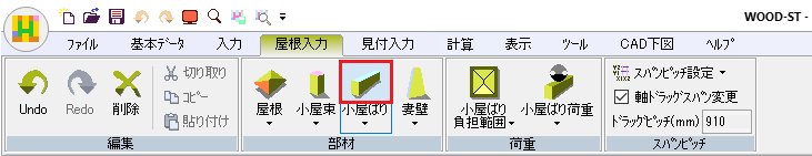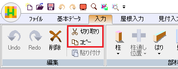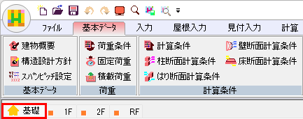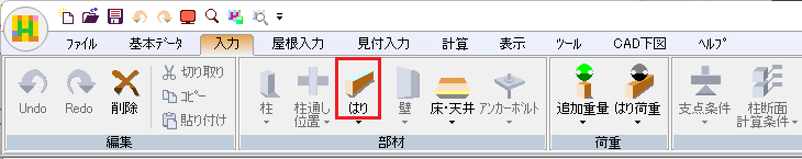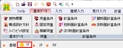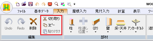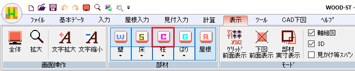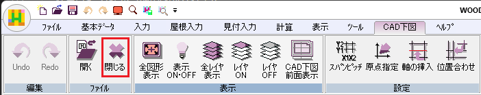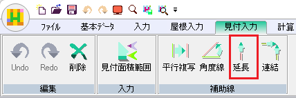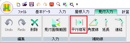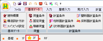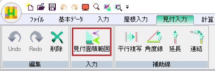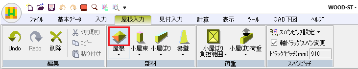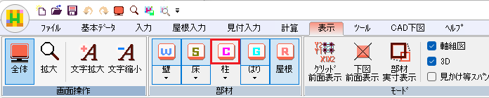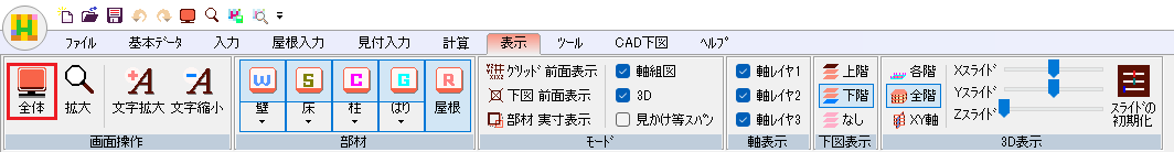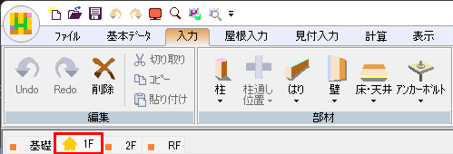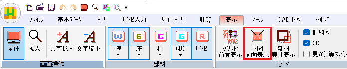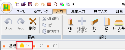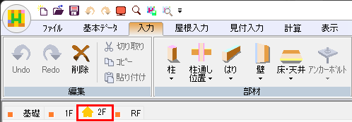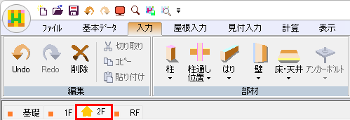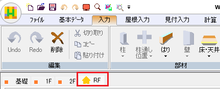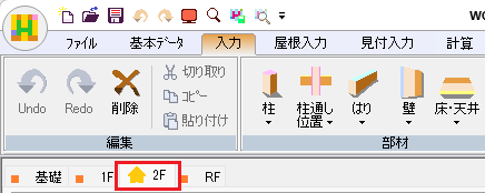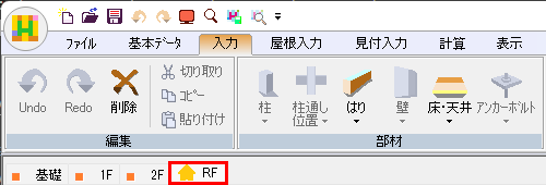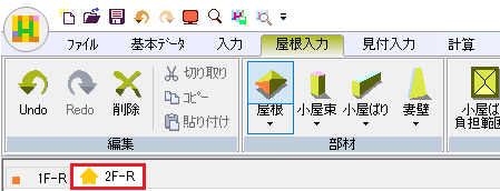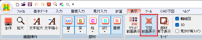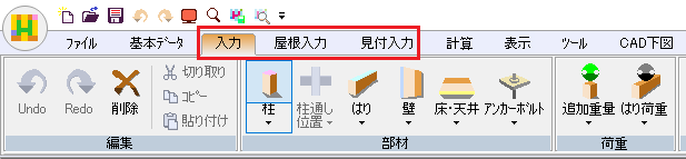 [入力][屋根入力][見付入力]メニューをクリックし、作業ウィンドウに表示する図を変更します。