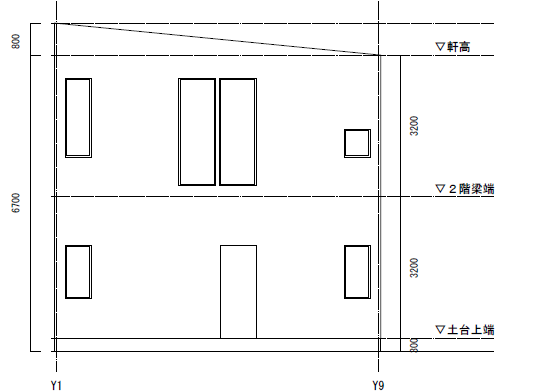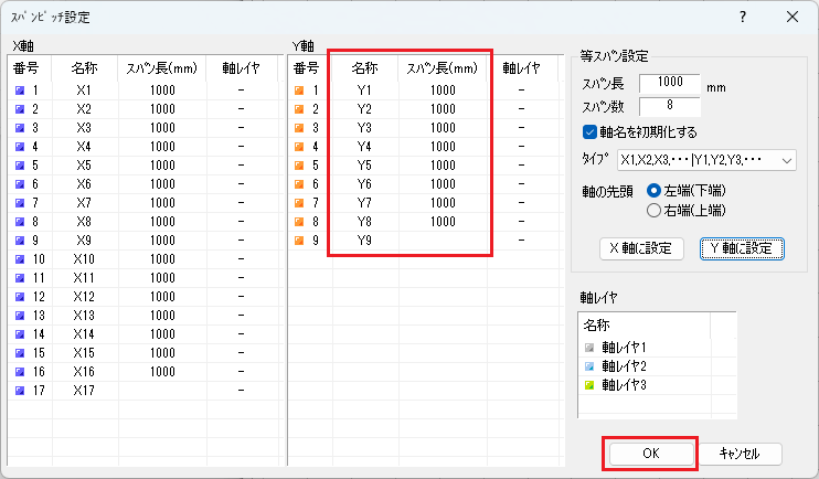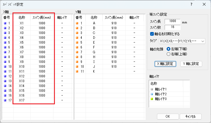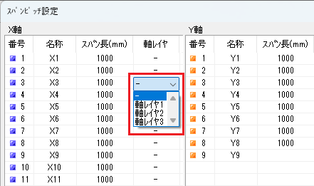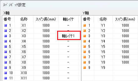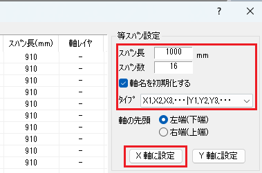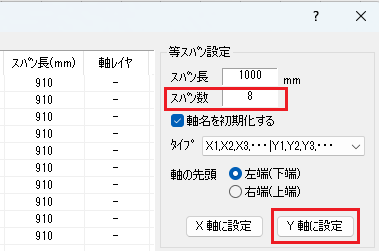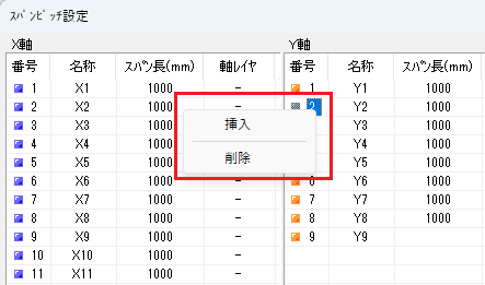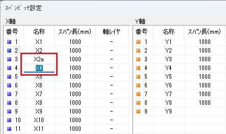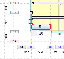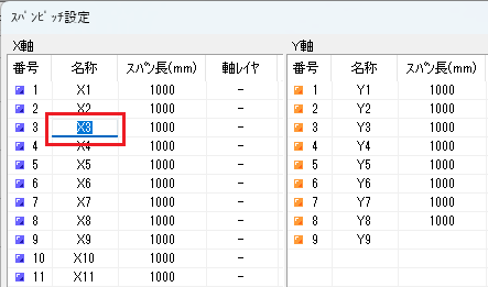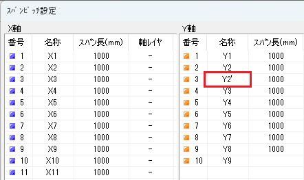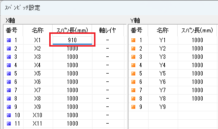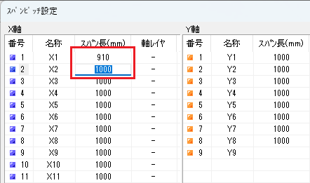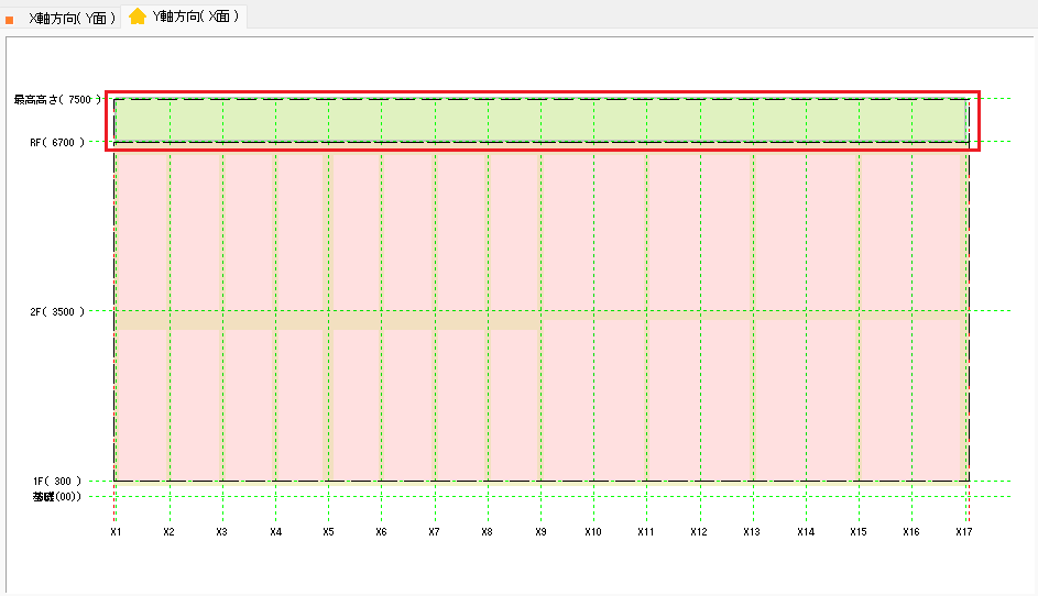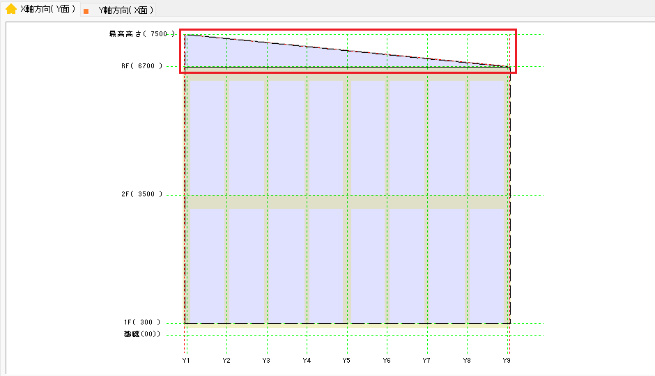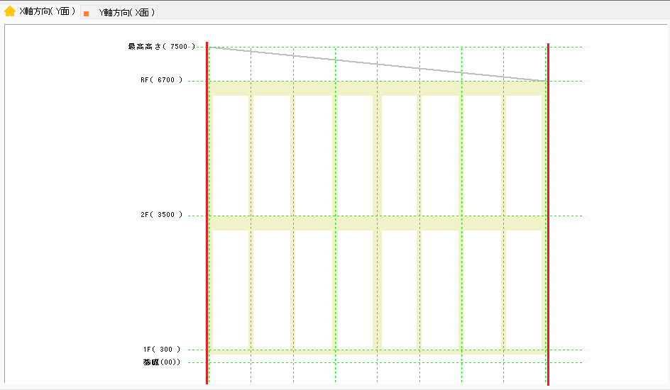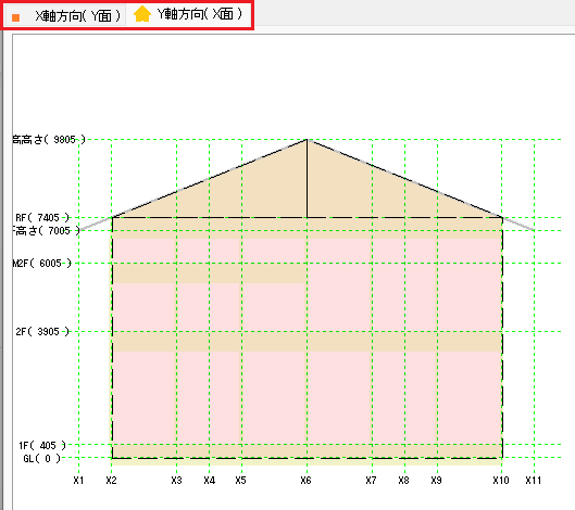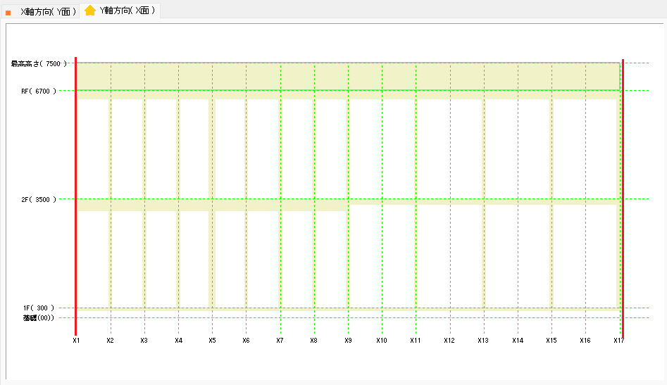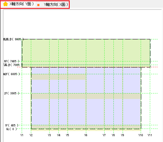 [見付入力]メニューから[X軸方向(Y面)]タブ [見付入力]メニューから[Y軸方向(X面)]タブ
