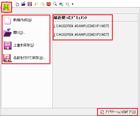 [新規作成][開く][上書き保存][名前を付けて保存]コマンドを実行できます。