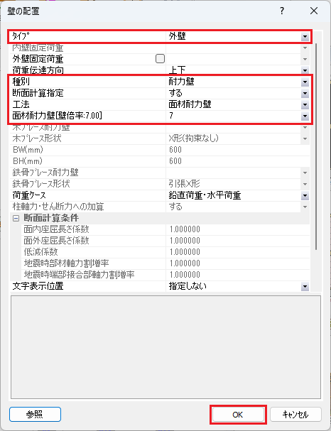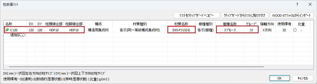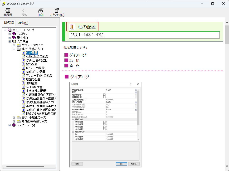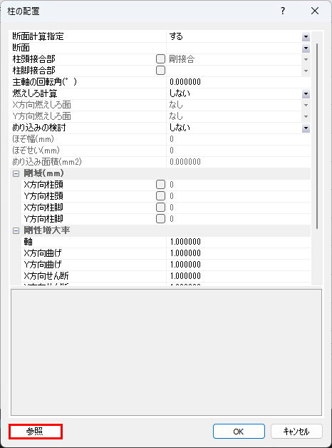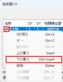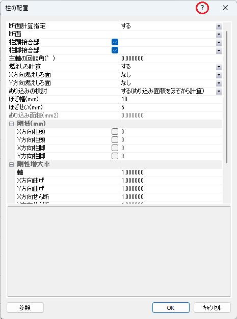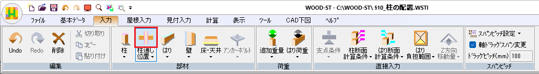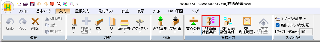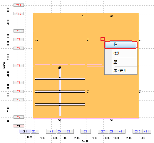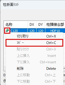 柱を右クリックする   [柱のプロパティ]ダイアログにデータを入力して