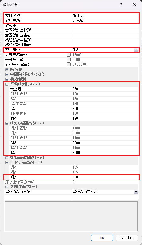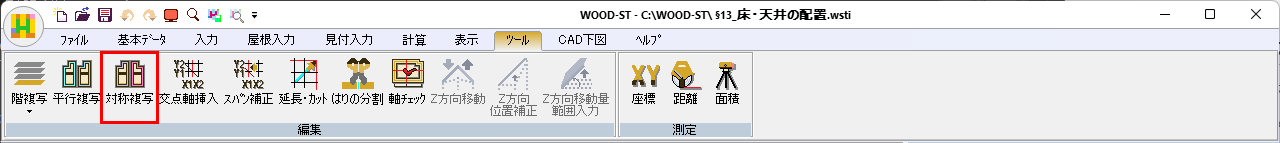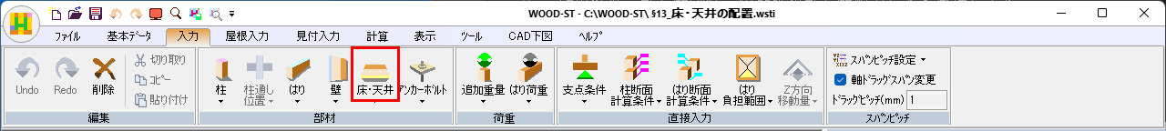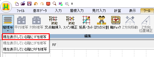 [入力]メニューから[伏図-1階] [屋根入力]メニューから[小屋伏図-M2階]
