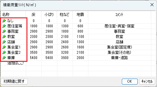 [接合金物]ダイアログの[ユーザー定義]リストが表示されます。