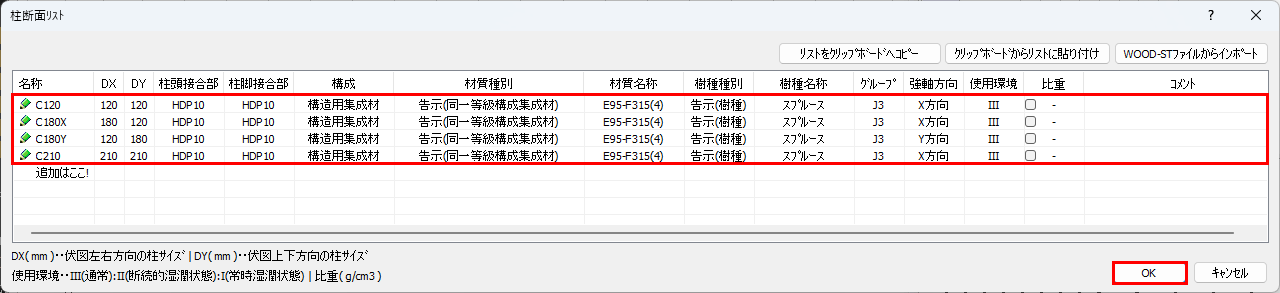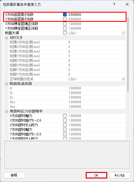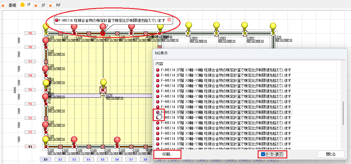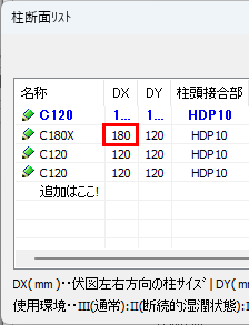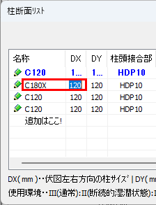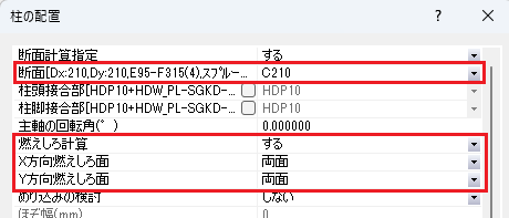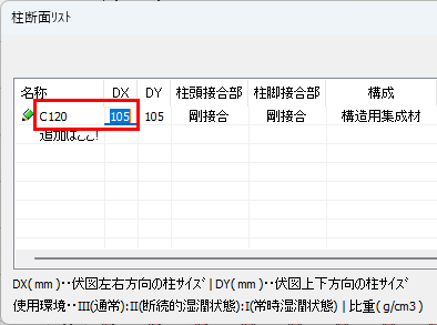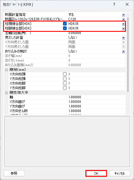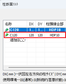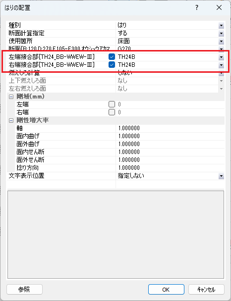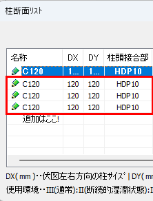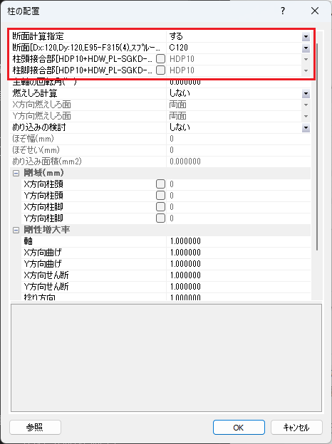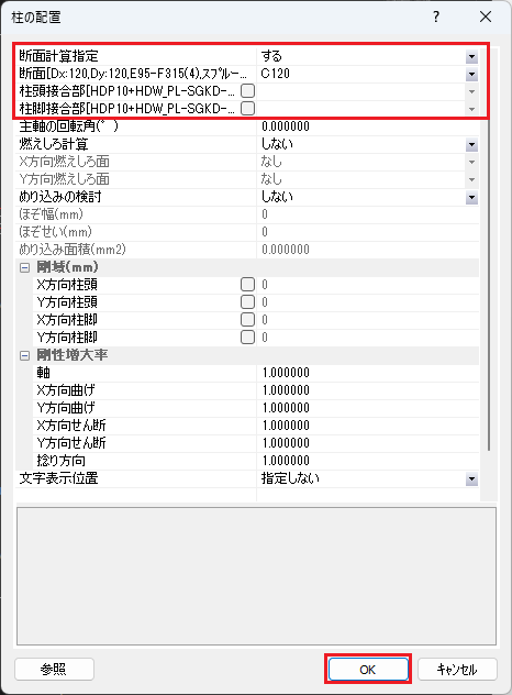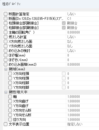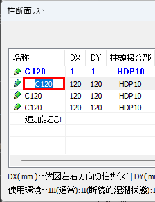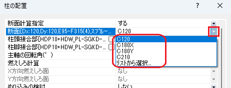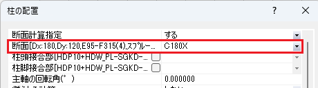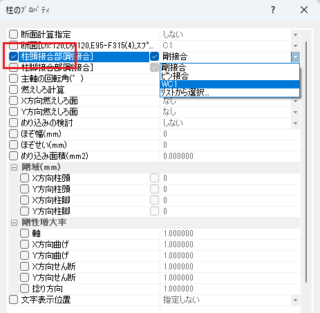[柱頭接合部名称][柱脚接合部名称]に✓を入れる   接合部名称が表示される