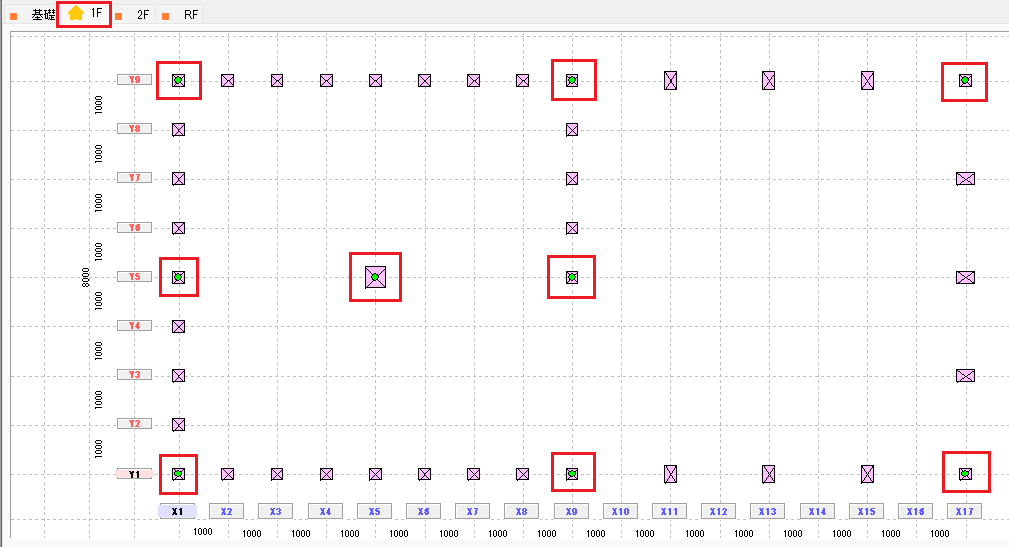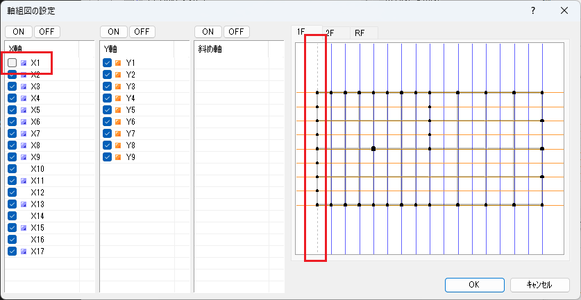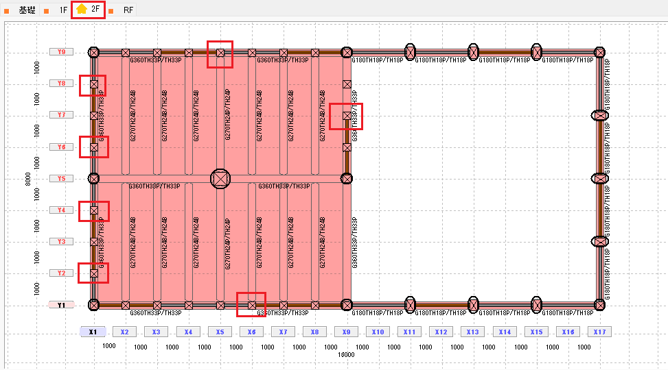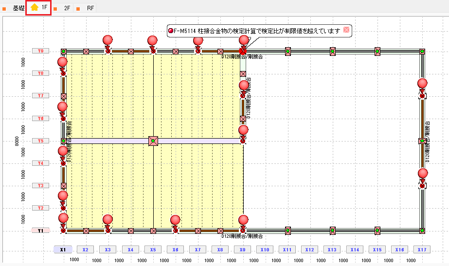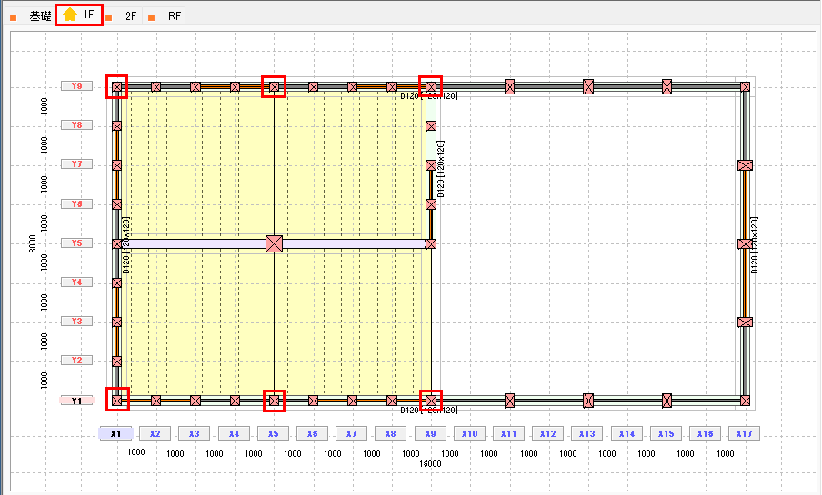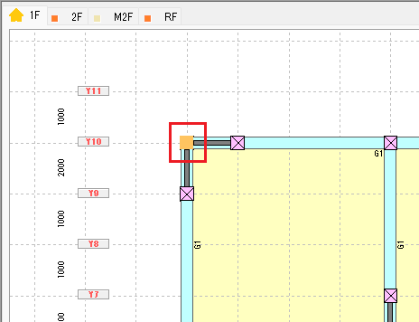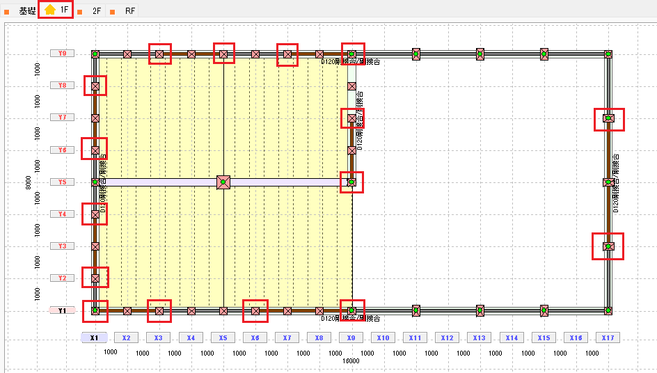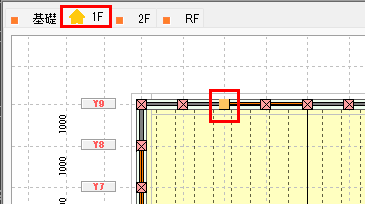 [1F]と同様に、下記■の位置の柱頭・柱脚接合部を変更しましょう。