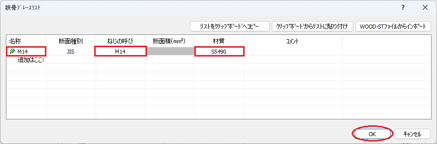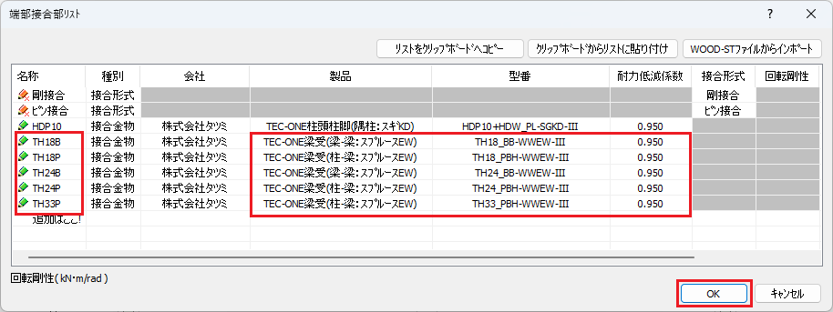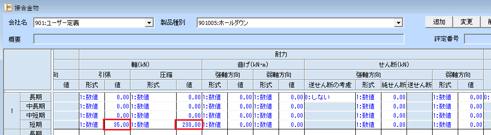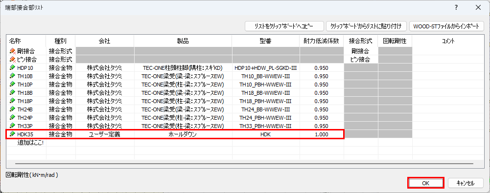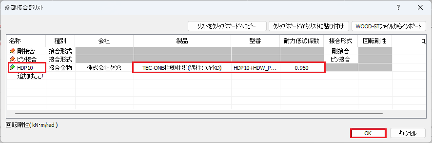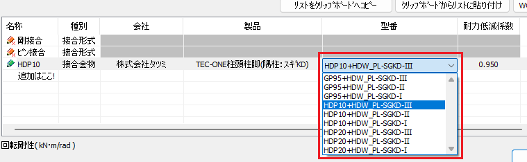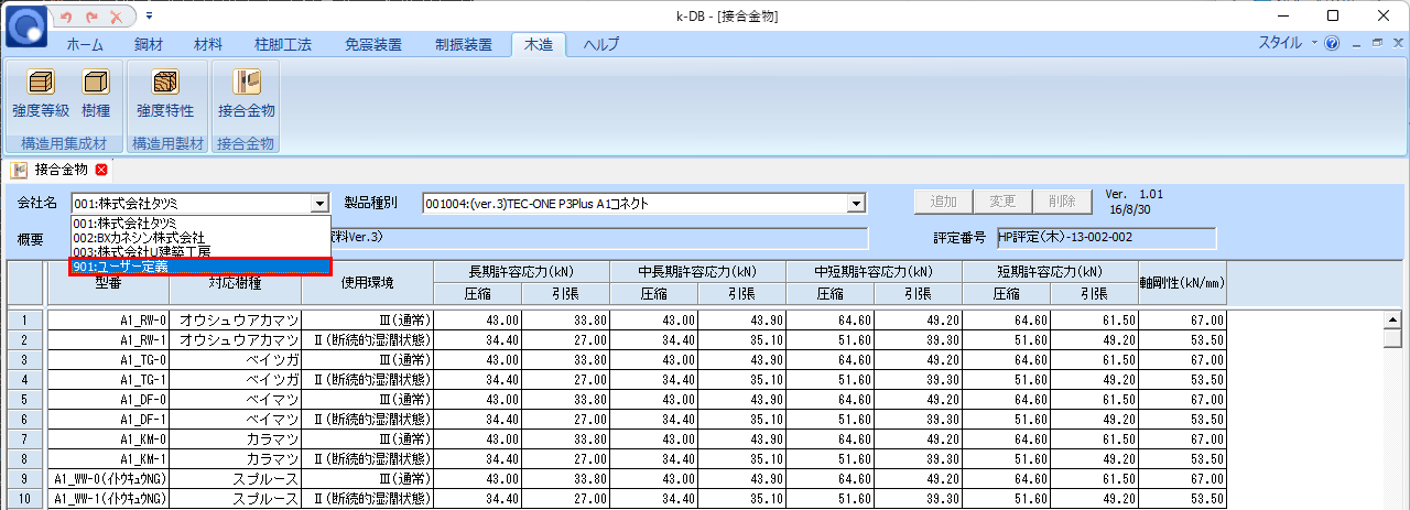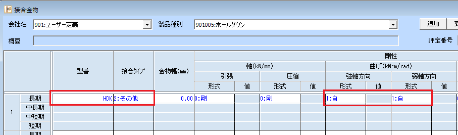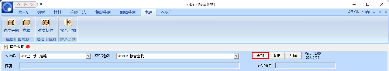 [k-DB]に追加した接合金物の名称、型番を登録します。