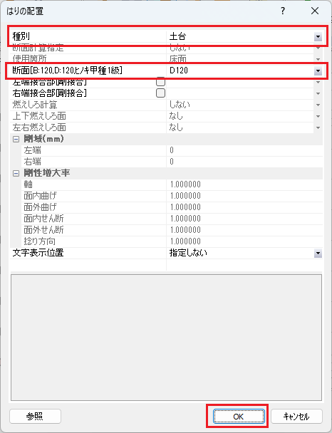 同様にして、下記■の位置の柱頭・柱脚接合部を変更しましょう。