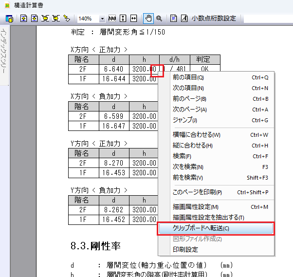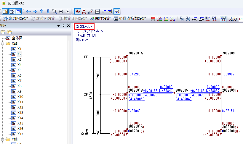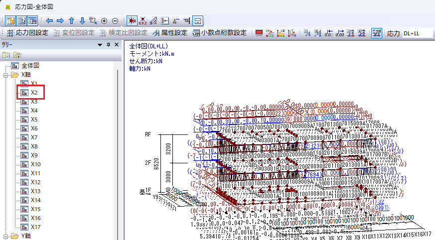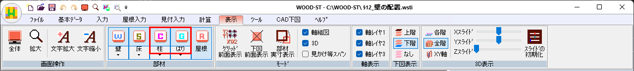 現在伏図に表示されている部材を軸組図や3Dモデルで表示します。