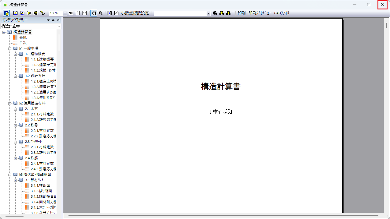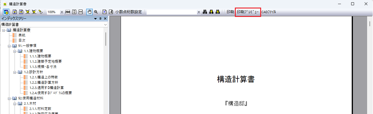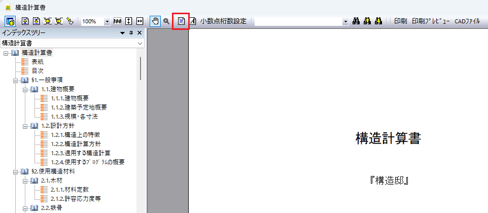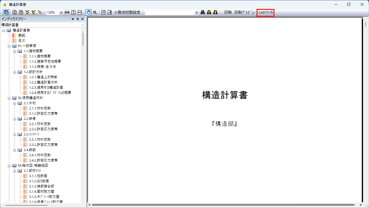 1.計算結果ウィンドウ内の[CADファイル]ボタンをクリックする
