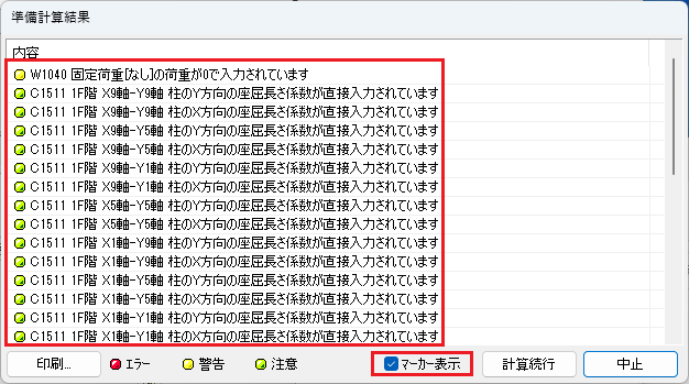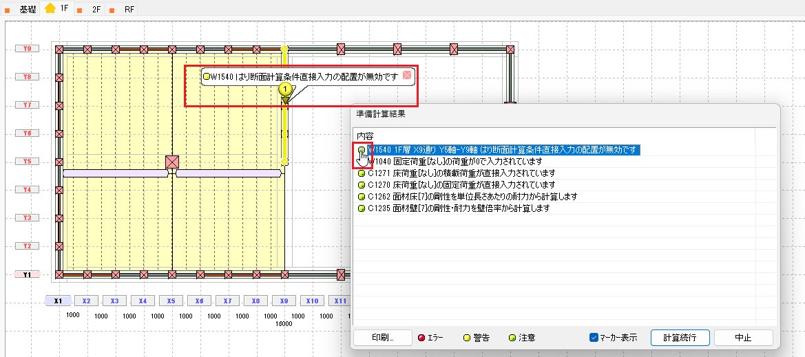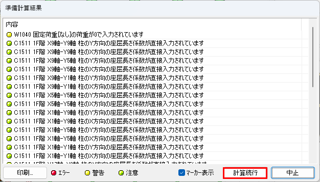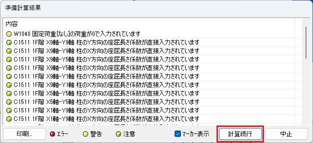 準備計算結果の内容を確認して問題がなければ[計算続行]ボタンをクリックします。