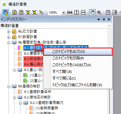 ツリーメニューウィンドウ内のトピックを右クリックすることで、選択したトピックのCADファイルを作成できます。