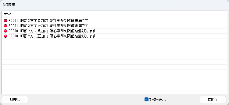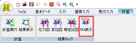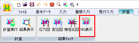[計算]メニューから[NG表示]を選択し、[NG表示]ダイアログを表示します。