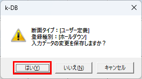 [k-DB]ダイアログが表示されます。[はい]ボタンをクリックします。