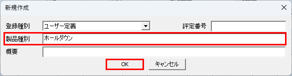 既にユーザー定義された接合金物がある場合、[ユーザー定義]を選択しただけでは[新規作成]ダイアログが表示されません。